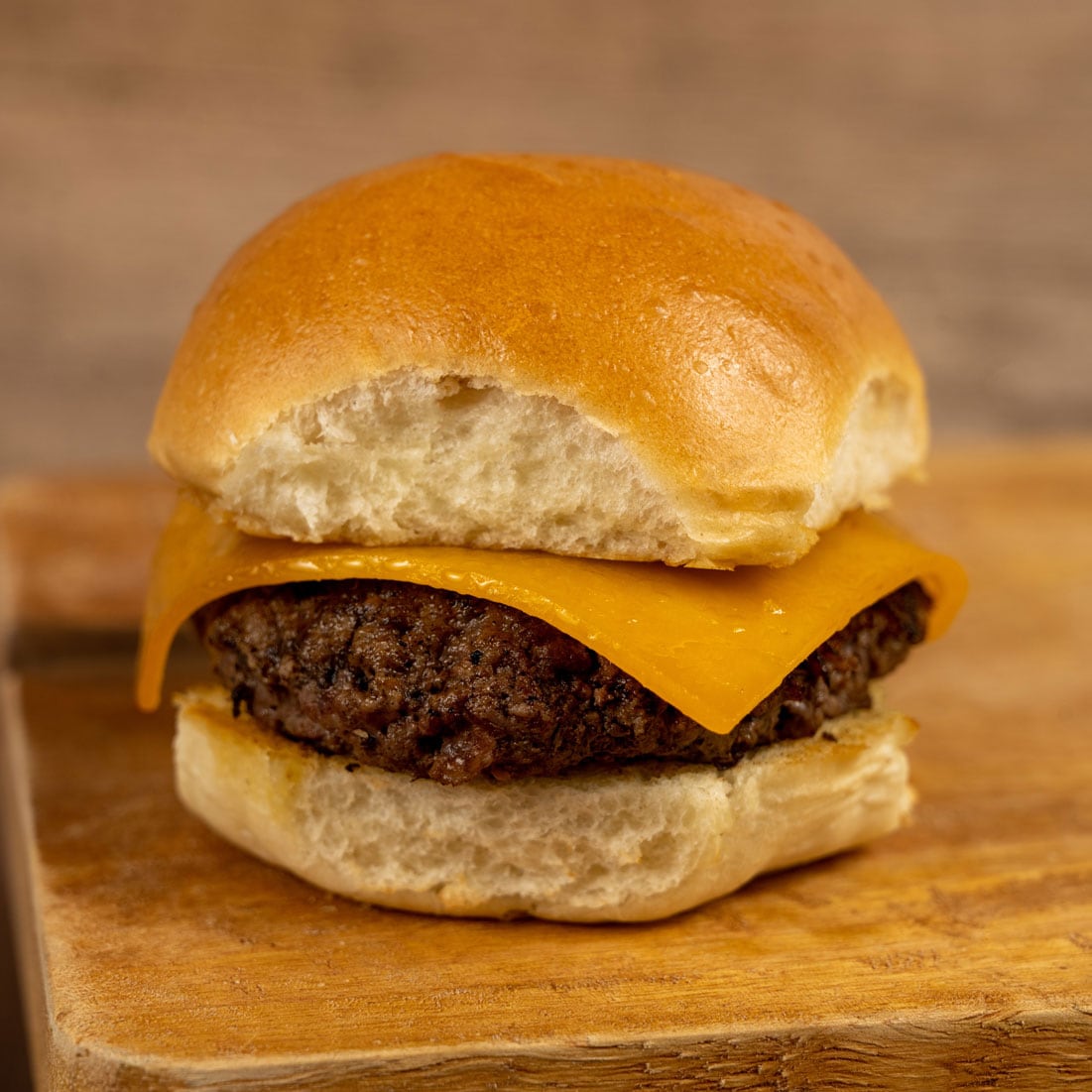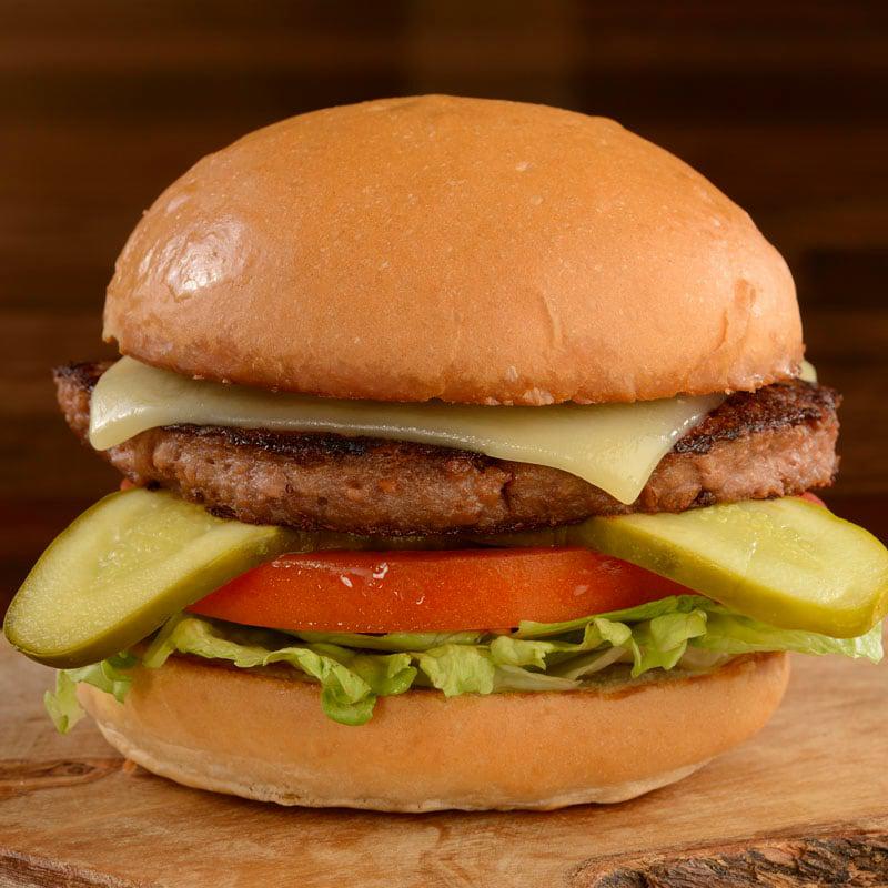 Two-Pressed Signature-blend Patties topped with Cheddar, Lettuce, Tomato, and Pickle served on an Allergy-Friendly Bun