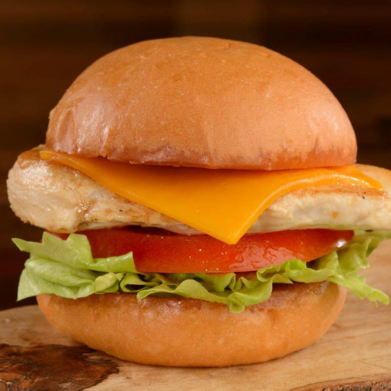 Grilled Chicken Breast topped with Lettuce, Tomato, Blue Cheese Crumbles, Bacon, and Buffalo-Ranch Sauce served on an Allergy-Friendly Bun