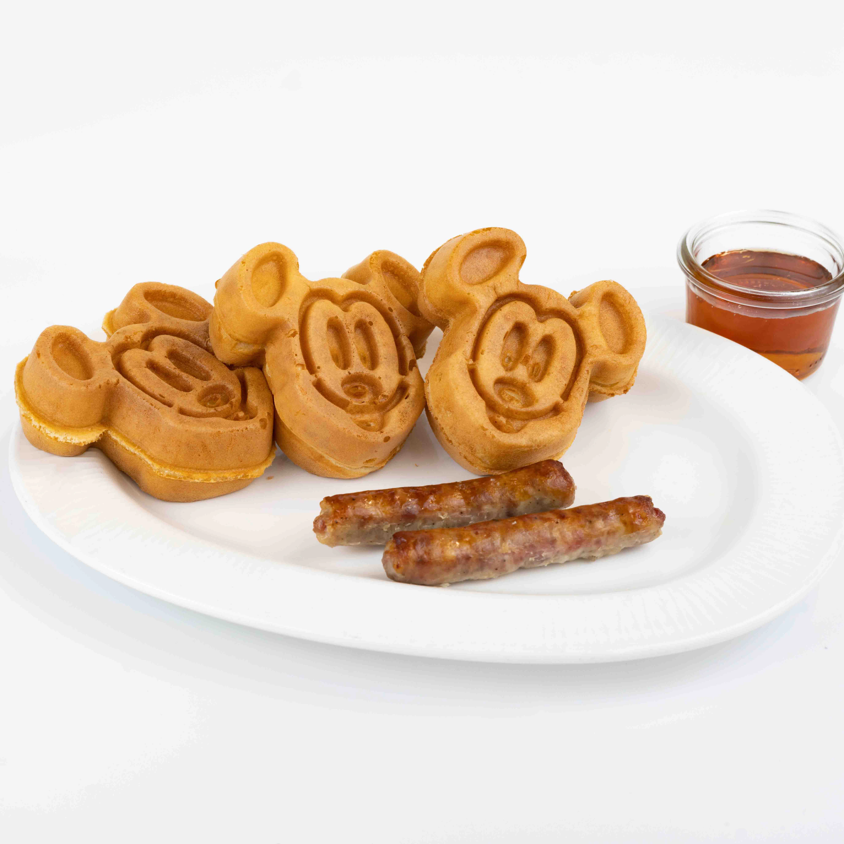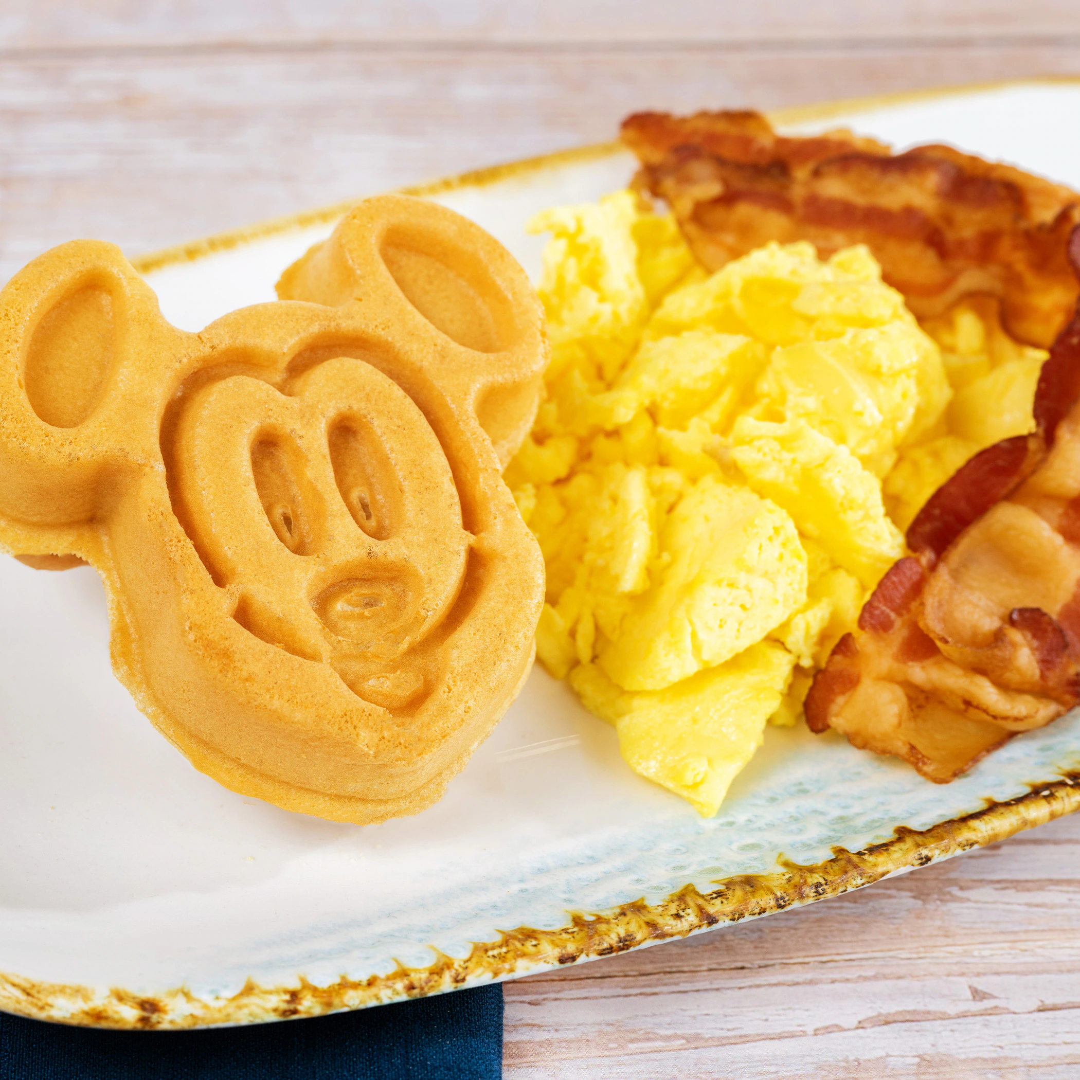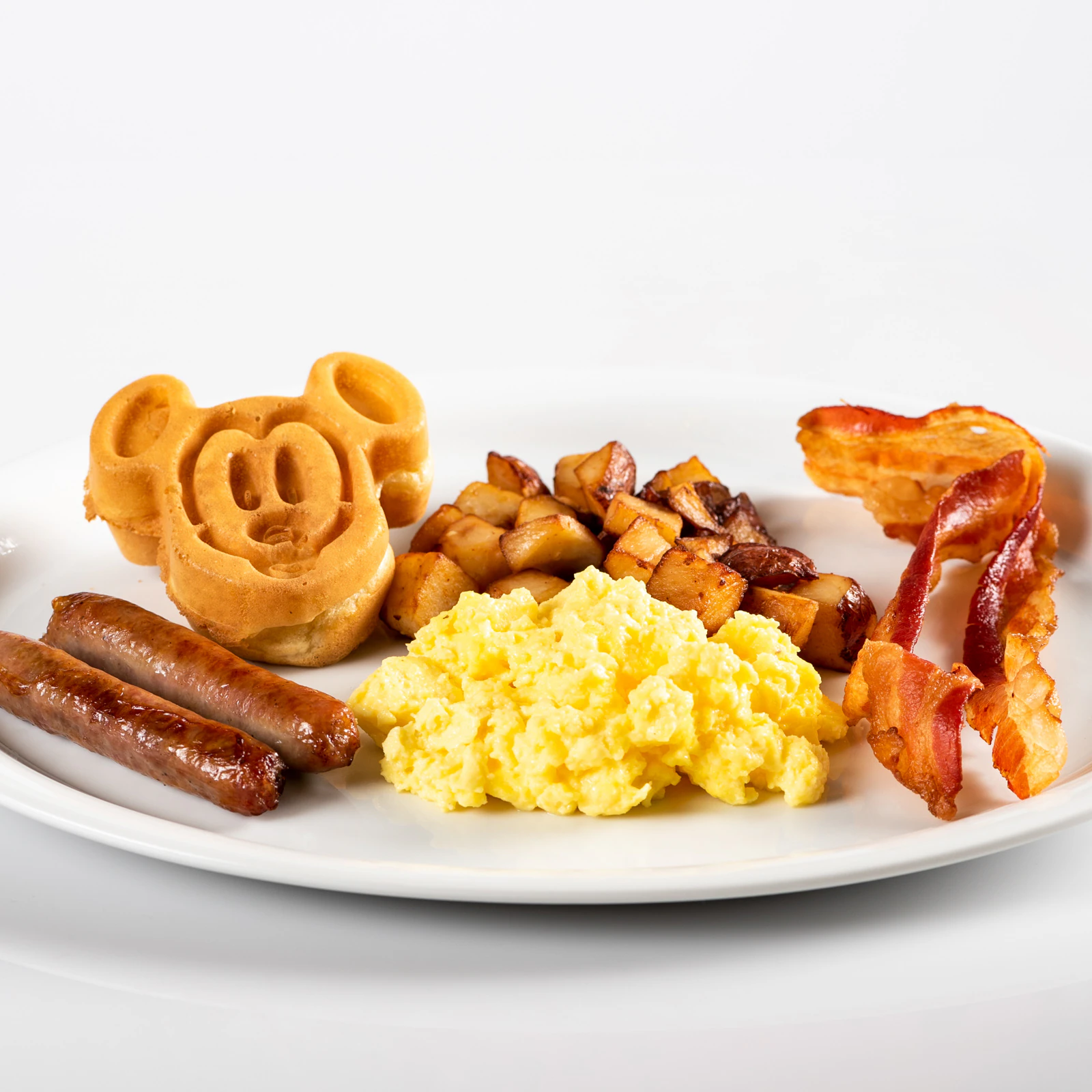 Scrambled Eggs and a Mickey-shaped Waffle served with choice of two (2) Sides and choice of Small Lowfat Milk or Small DASANI® Bottled Water