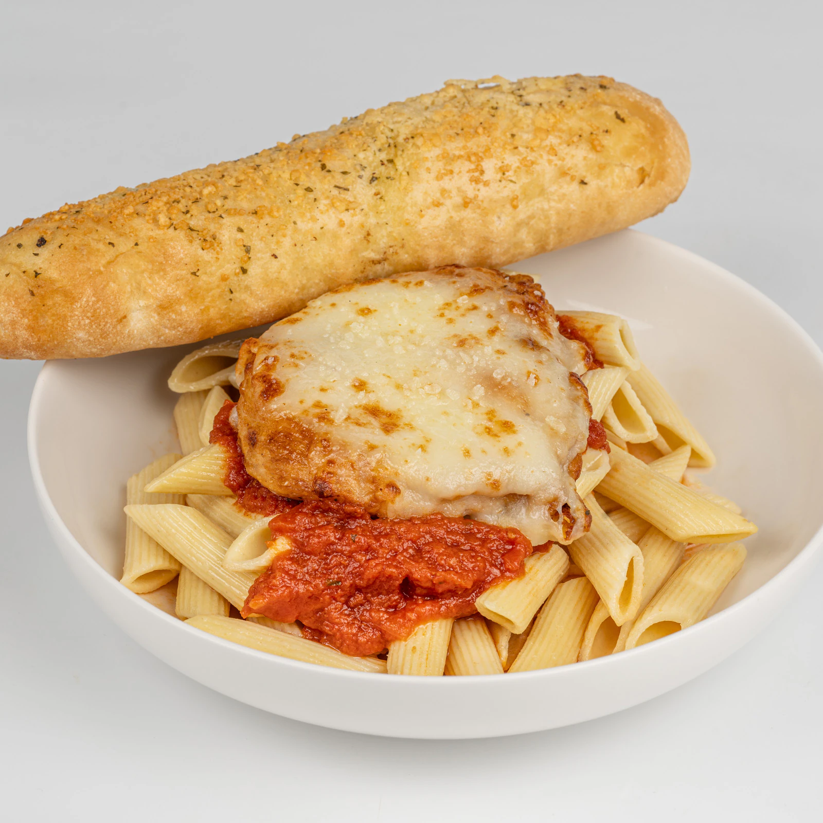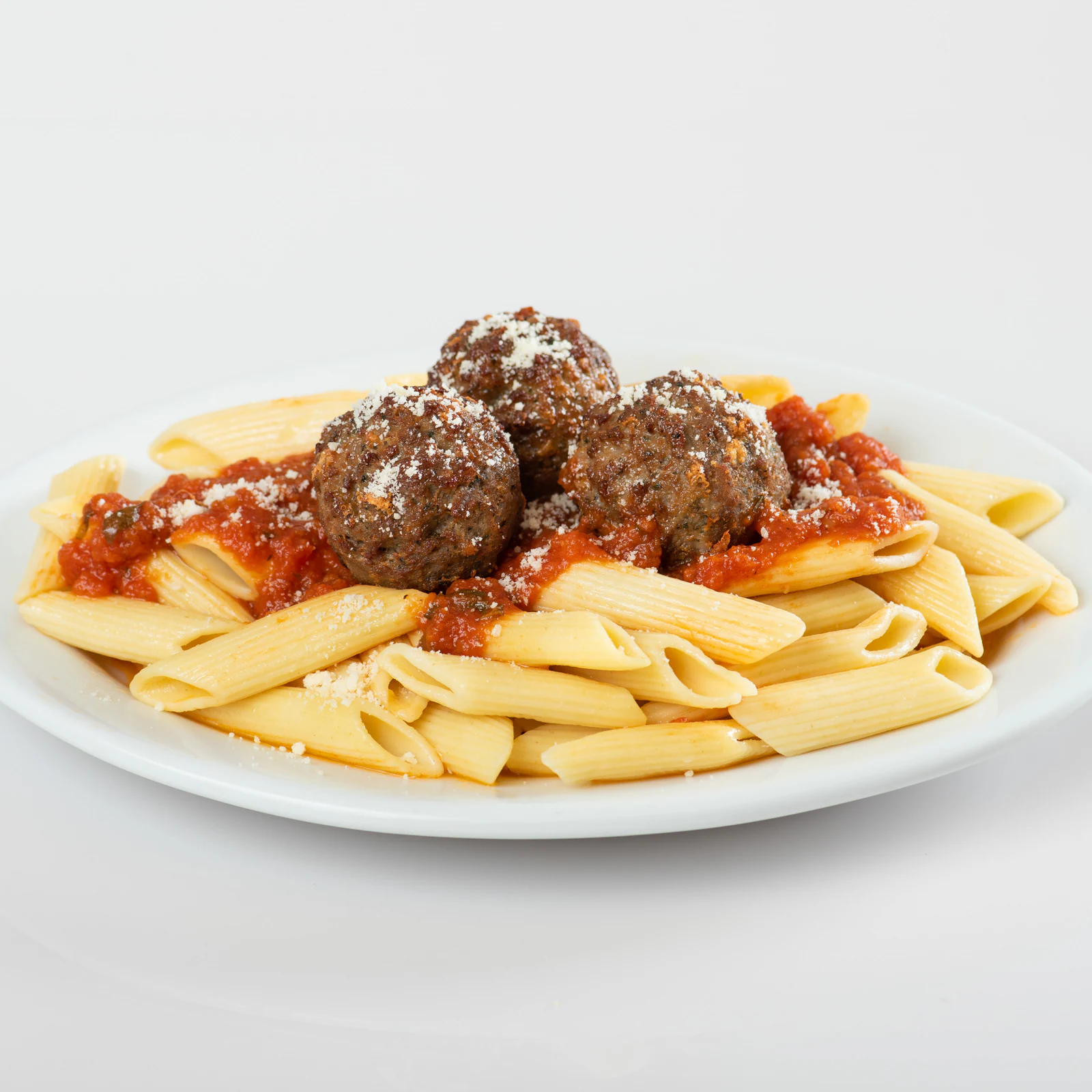 Italian Meatballs over Penne Pasta with a choice of Marinara or Alfredo and served with a Bread Stick