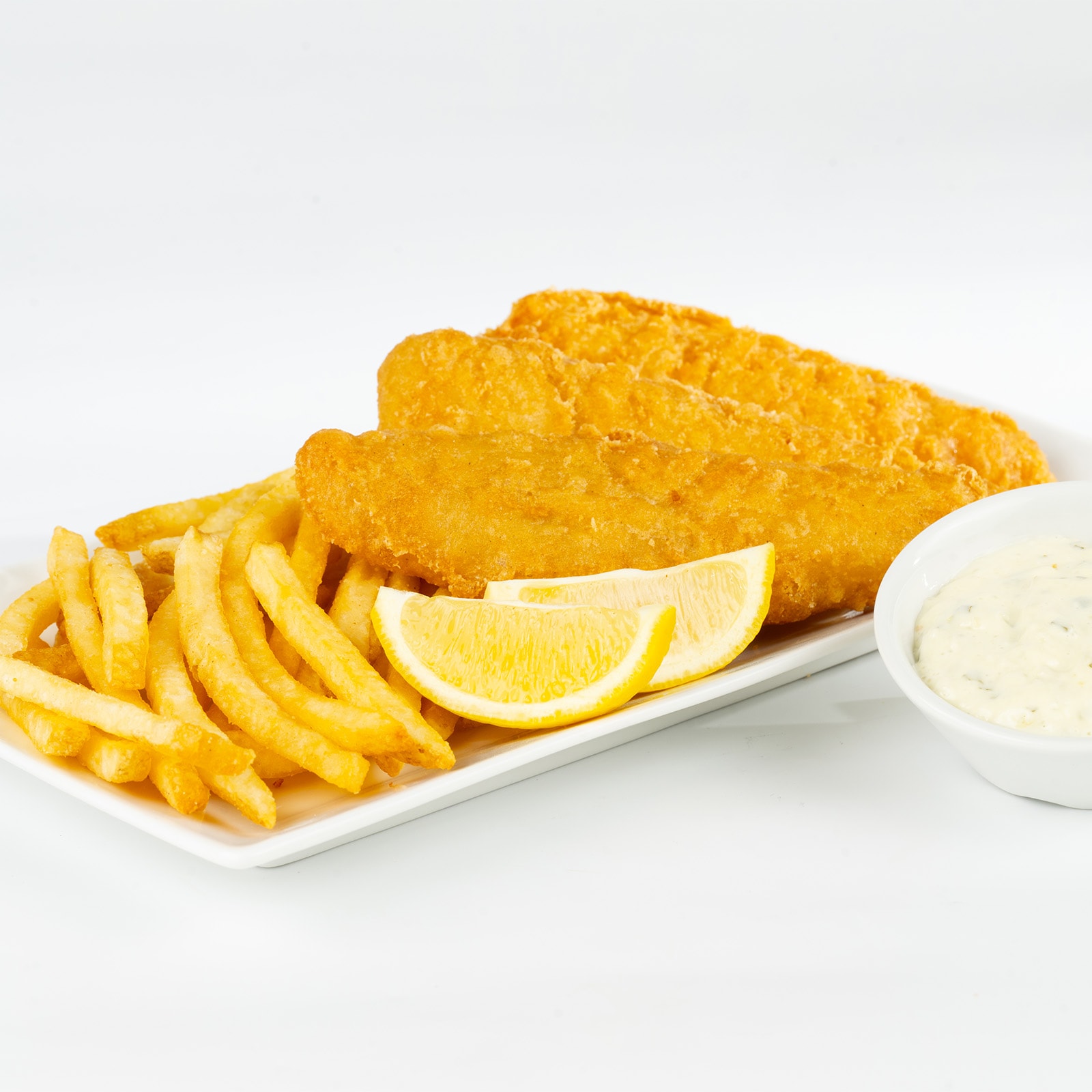 Beer-battered Cod Fillets served with Tartar Sauce and French Fries