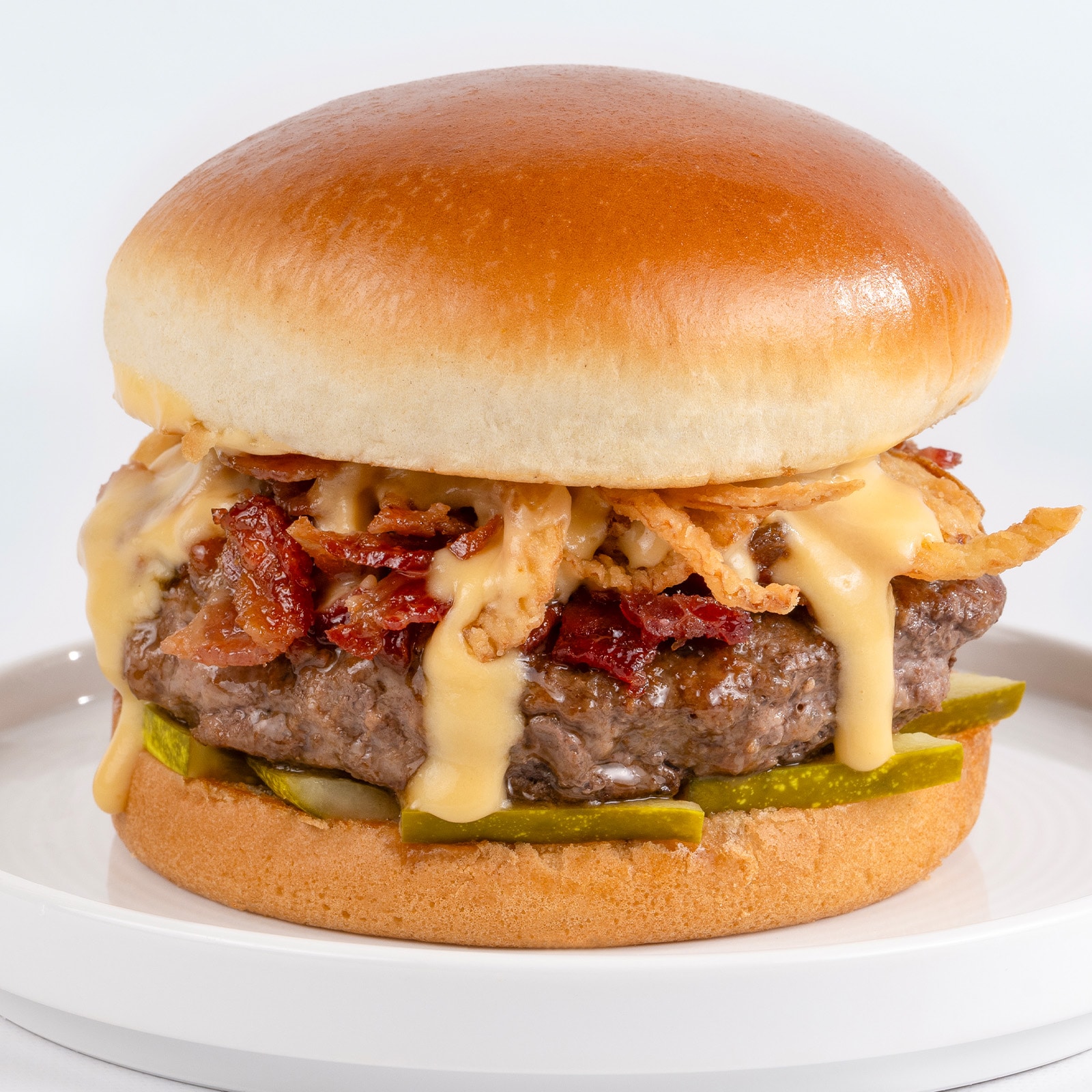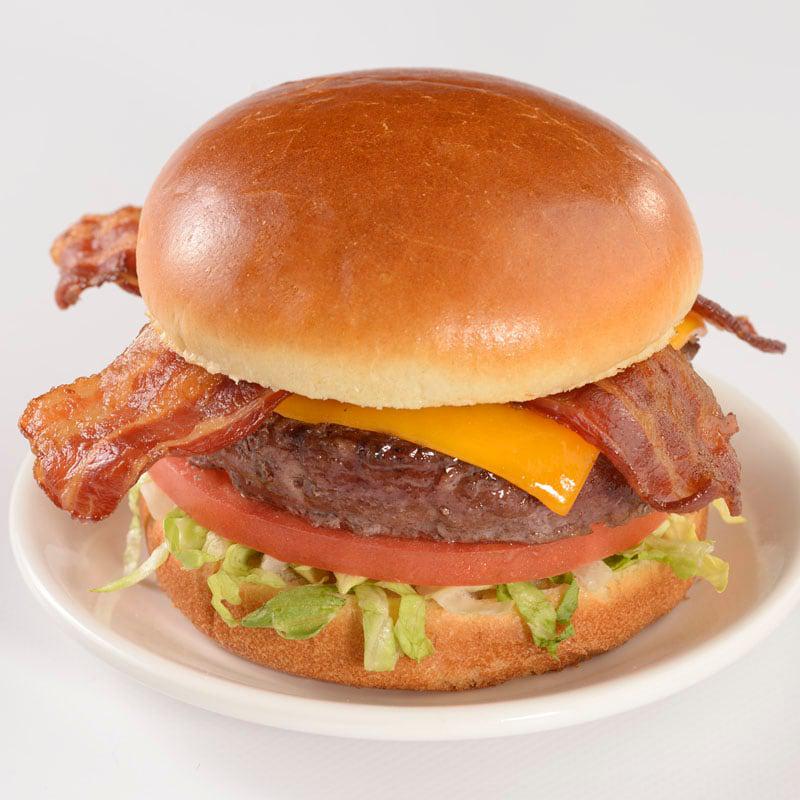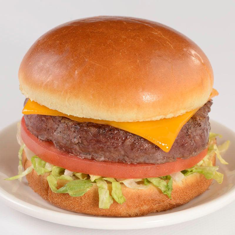 Grilled Signature-blend Burger topped with Cheese, Lettuce, and Tomato on a Toasted Brioche Bun served with French Fries