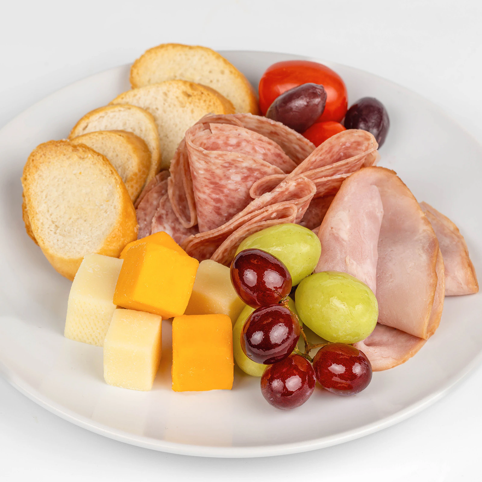 Cubed Cheese, Salami, Ham, Grapes, Tomatoes, and Olives