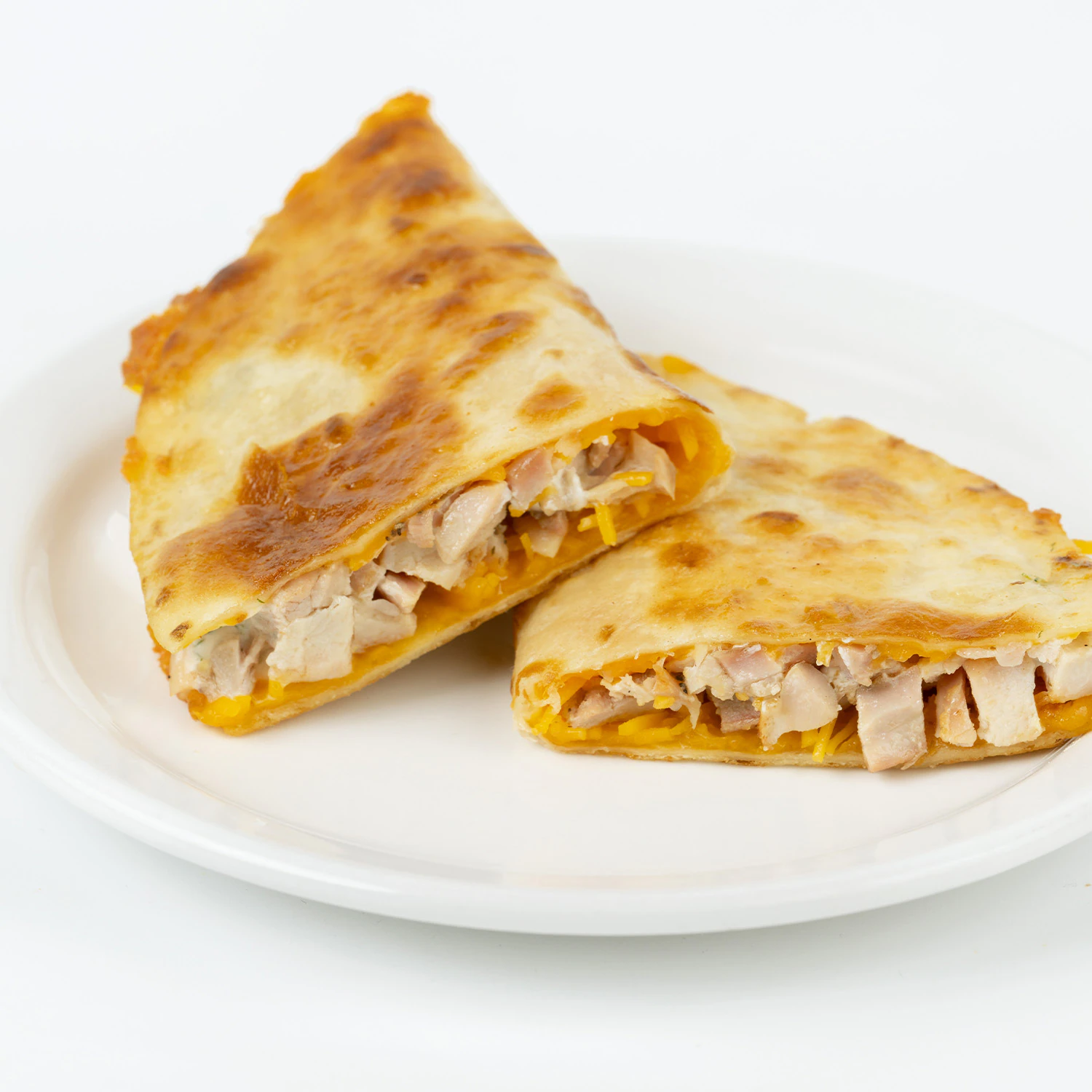 Grilled Flour Tortilla, Chicken, and Cheese served with Strawberry-flavored Yogurt Smoothie, Apple Slices, and choice of Small Lowfat Milk or Small DASANI® Bottled Water