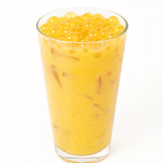 Black Tea, Coconut Milk, and Mango Purée garnished with Mango Boba Pearls