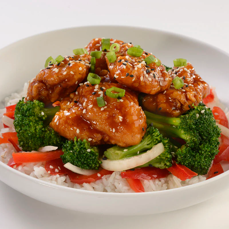 Served with Broccoli, Red Peppers, Onions, Rice, and choice of Small Lowfat Milk or Small DASANI® Bottled Water