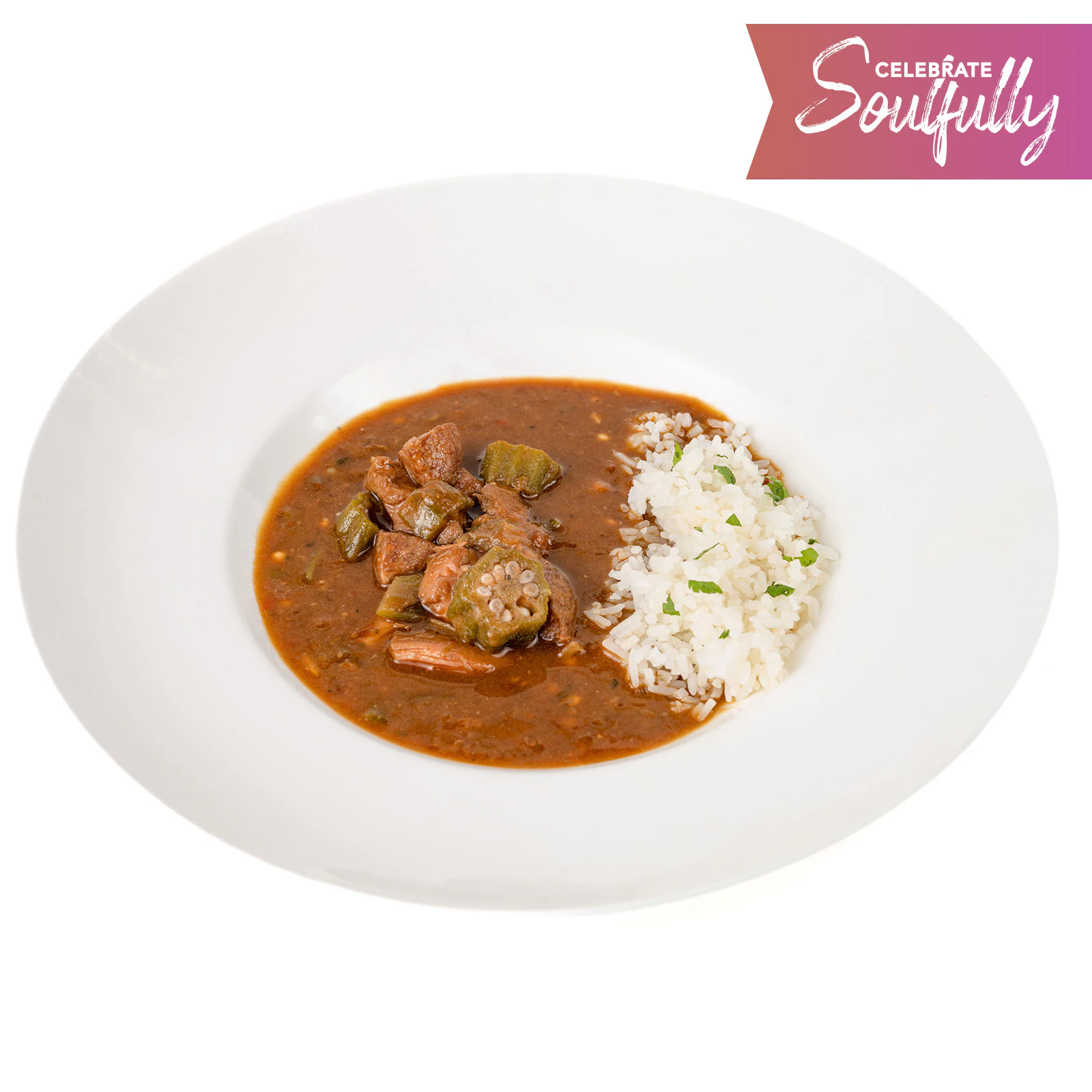 Chicken, Andouille Sausage, Okra, and Seasonings simmered in Chicken Stock served over Rice
