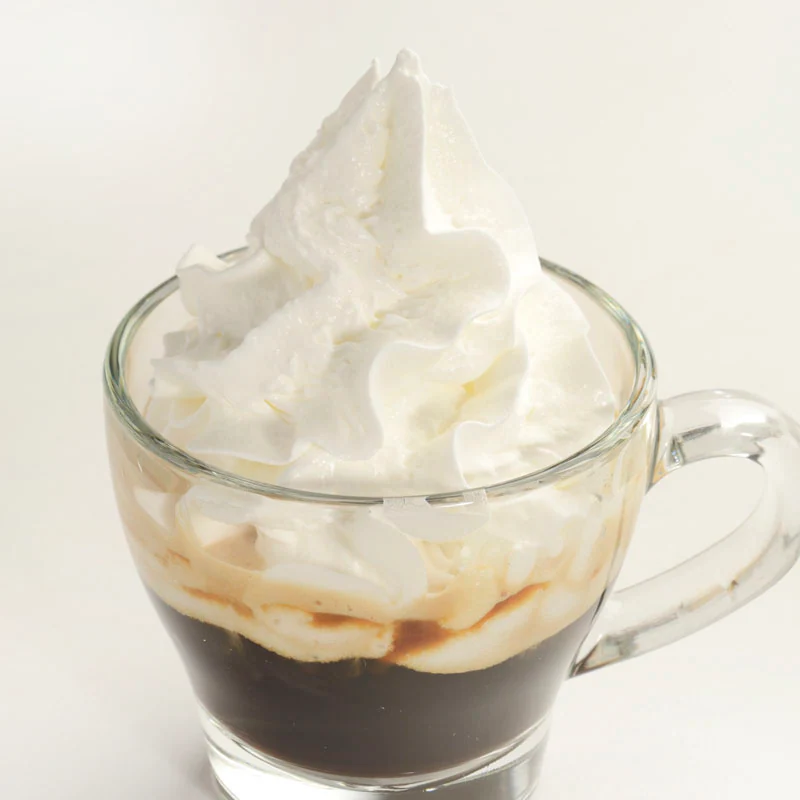 Espresso and Cream blended with hints of Vanilla and Chocolate topped with Whipped Cream and Chocolate Drizzle