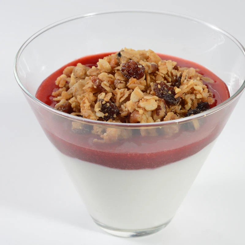 Honey Yogurt, Strawberries in Syrup, and Granola