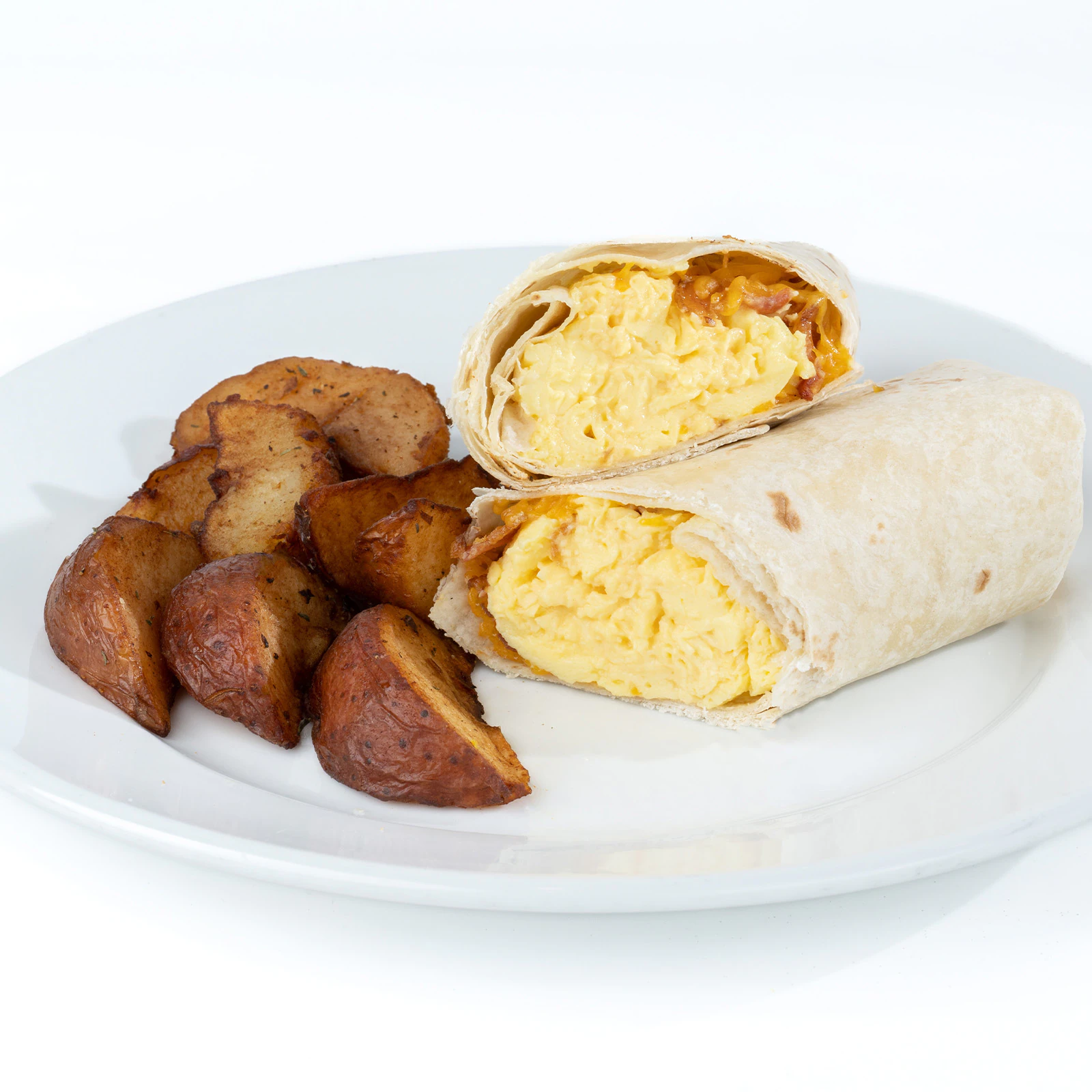 Scrambled Eggs, Bacon, and Cheddar served with Breakfast Potatoes