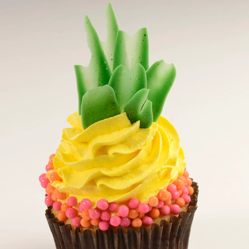 Vanilla Cupcake, DOLE Whip® Pineapple Cheesecake, and Pineapple Buttercream with White Chocolate Décor