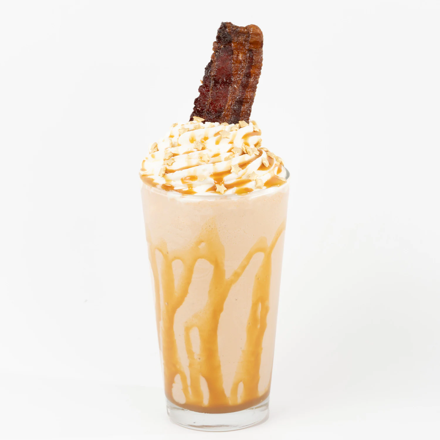 Peanut Butter and Banana Shake with Caramel Sauce, Whipped Cream, and Candied Bacon