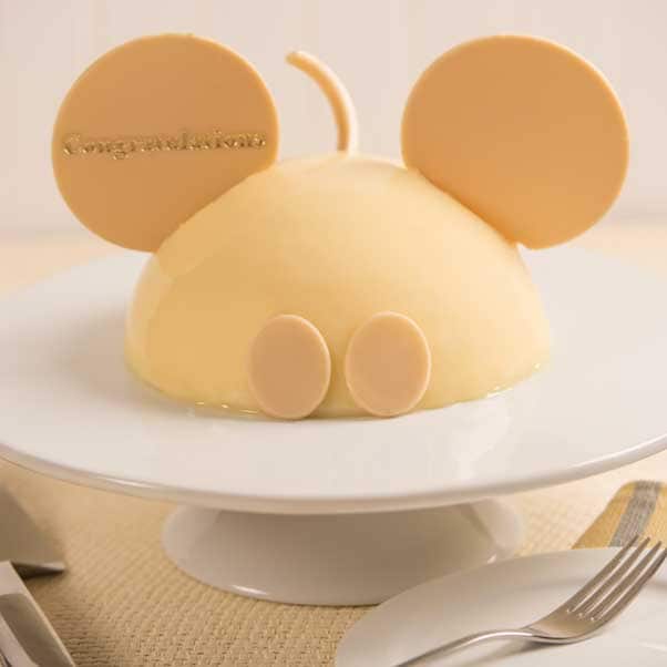 Vanilla Cake with White Chocolate Ganache and White Chocolate Mousse with your choice of Engraving Options. One Cake feeds 4 to 6 Guests
