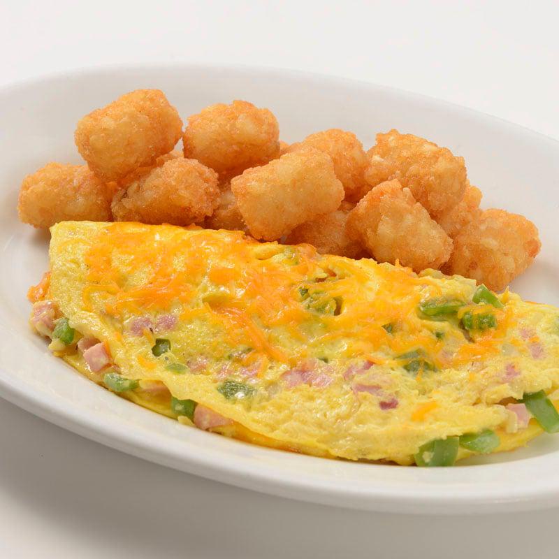 Ham, Bell Peppers, Onions, and Cheddar served with Potato Barrels