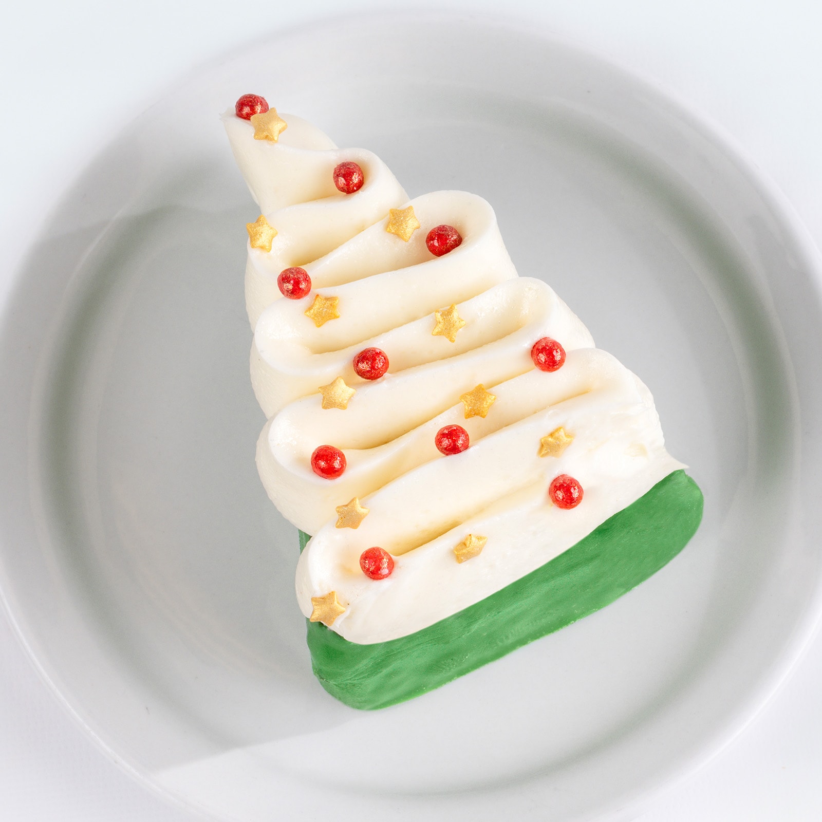 Gingerbread Cake, Caramel Ganache Filling, Caramel Crispy Pearls, Eggnog Pastry Cream, and White Chocolate