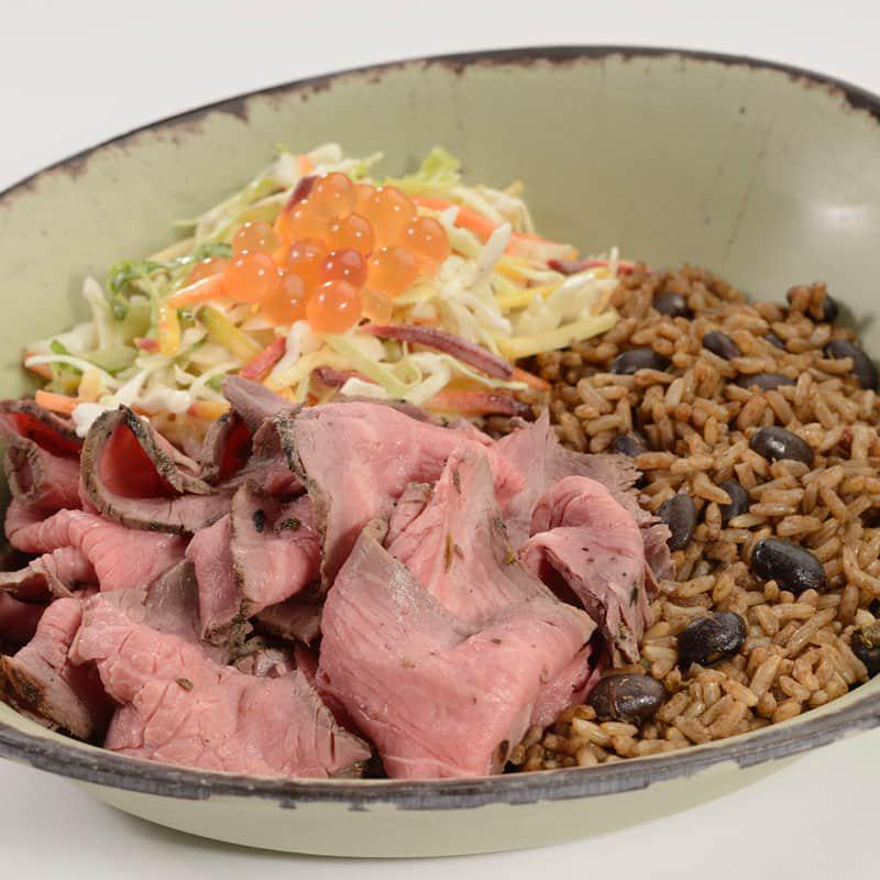 Slow-Roasted Sliced Grilled Beef marinated in a blend of Garlic, Herbs, Red Pepper Spice and Red Wine Vinegar, paired with Wood-Grilled Chicken Thighs marinated in Garlic and Olive Oil, topped with crunchy Vegetable Slaw and Boba Balls served with your choice of Base and Sauce. *This item contains raw or undercooked ingredients. Consuming raw or undercooked meats, seafood, shellfish, or eggs may increase your risk of foodborne illness.