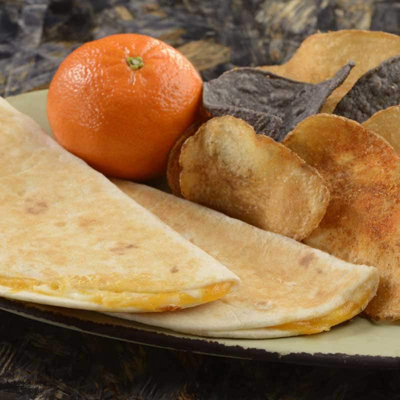 Cheddar and Mozzarella in a Tortilla served with Vegetable Chips and a Cuties® Mandarin with Small DASANI® Bottled Water or Lowfat Milk