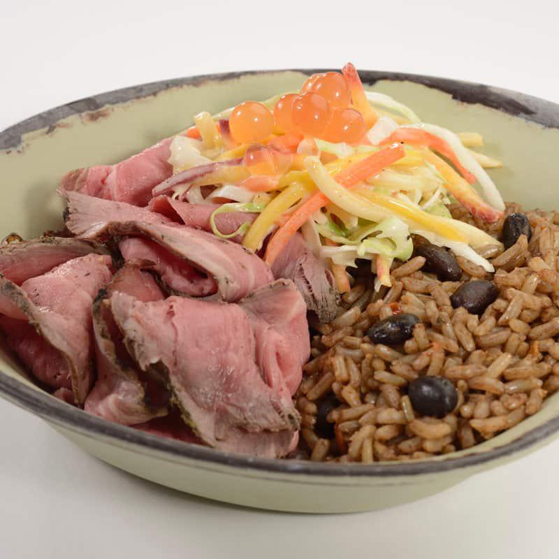 Slow-Roasted Sliced Grilled Beef marinated in a blend of Garlic, Herbs, Red Pepper Spice, and Red Wine Vinegar topped with Crunchy Vegetable Slaw and Boba Balls served with your choice of Base and Sauce. *This item contains raw or undercooked ingredients. Consuming raw or undercooked meats, seafood, shellfish, or eggs may increase your risk of foodborne illness.