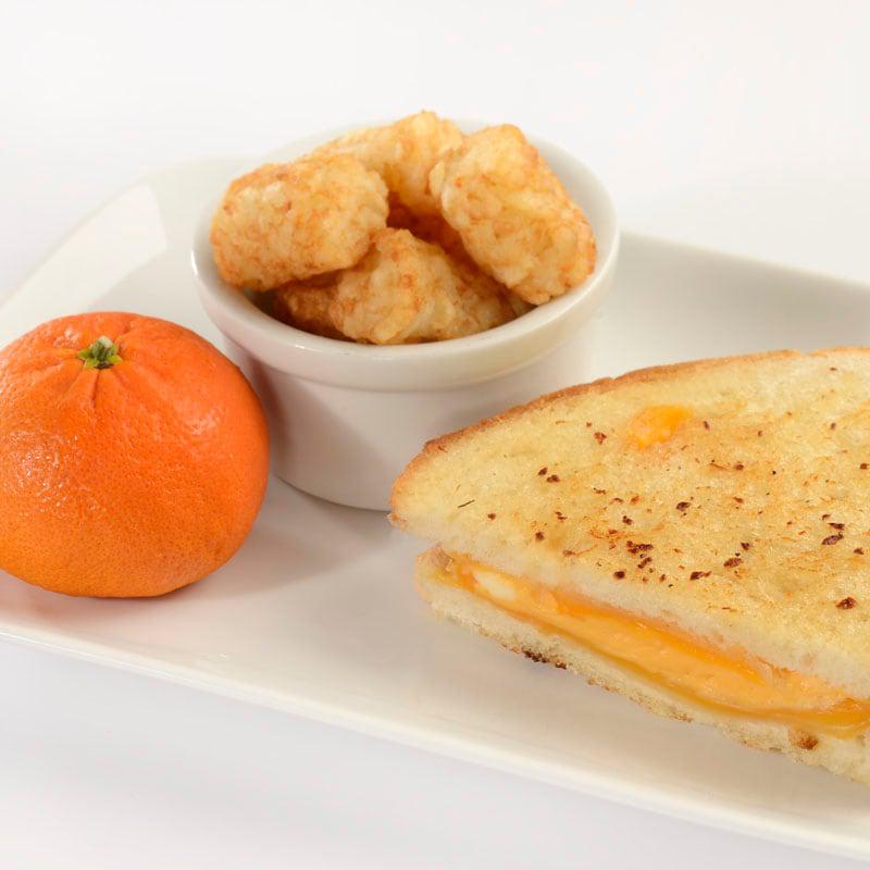 Melted "Cheddar" on Toasted Sourdough Bread served with a Cuties® Mandarin, Potato Barrels, and your choice of Beverage