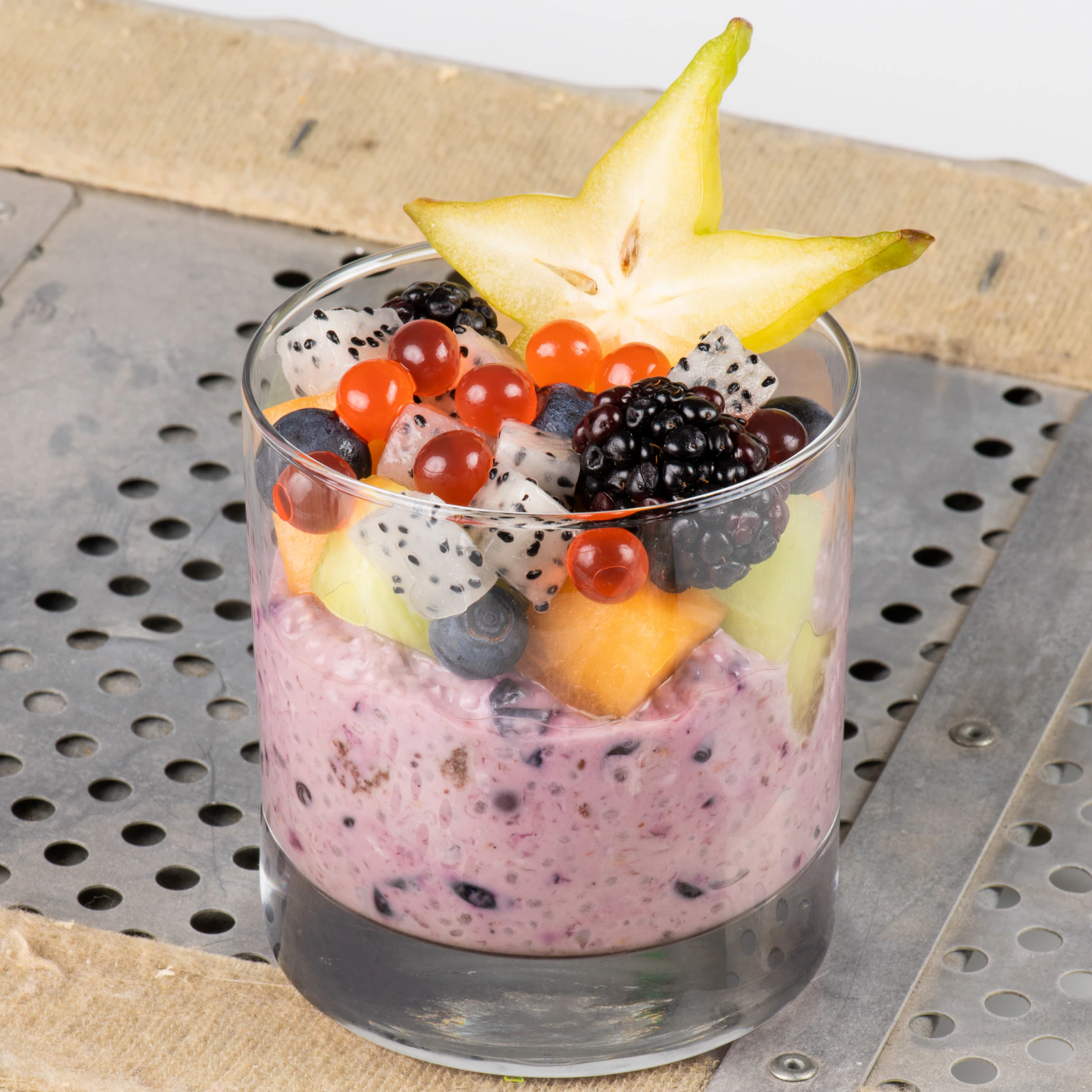 Oats, Dragon Fruit, Yogurt, Seasonal Fruit