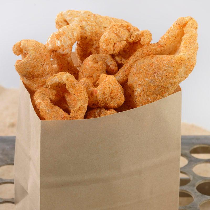 Pork Rinds seasoned in a Savory Blend of Ancho Chile, Cheddar, Smoke, and Cinnamon