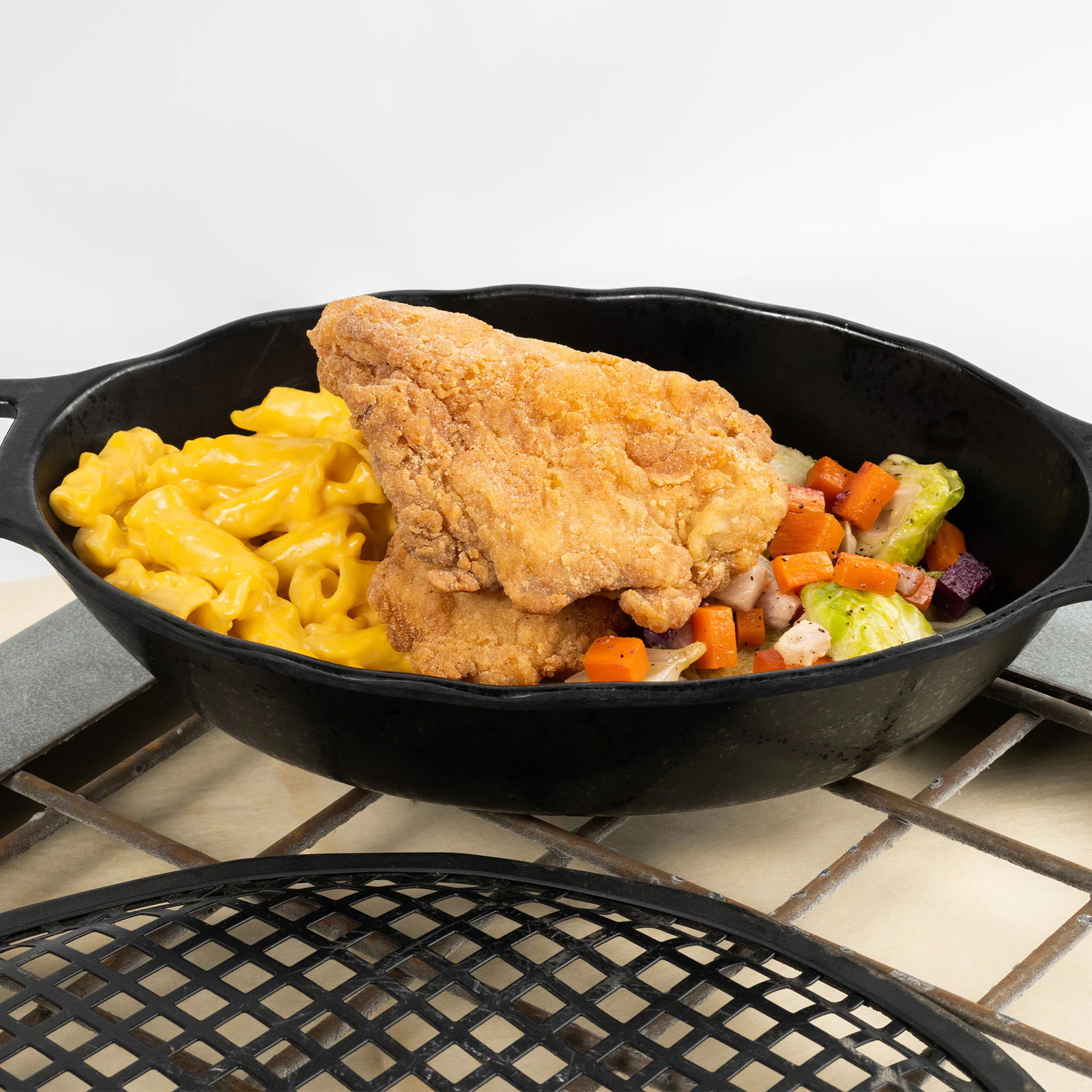Crispy Chicken served with Macaroni & Cheese and Roasted Harvest Vegetables