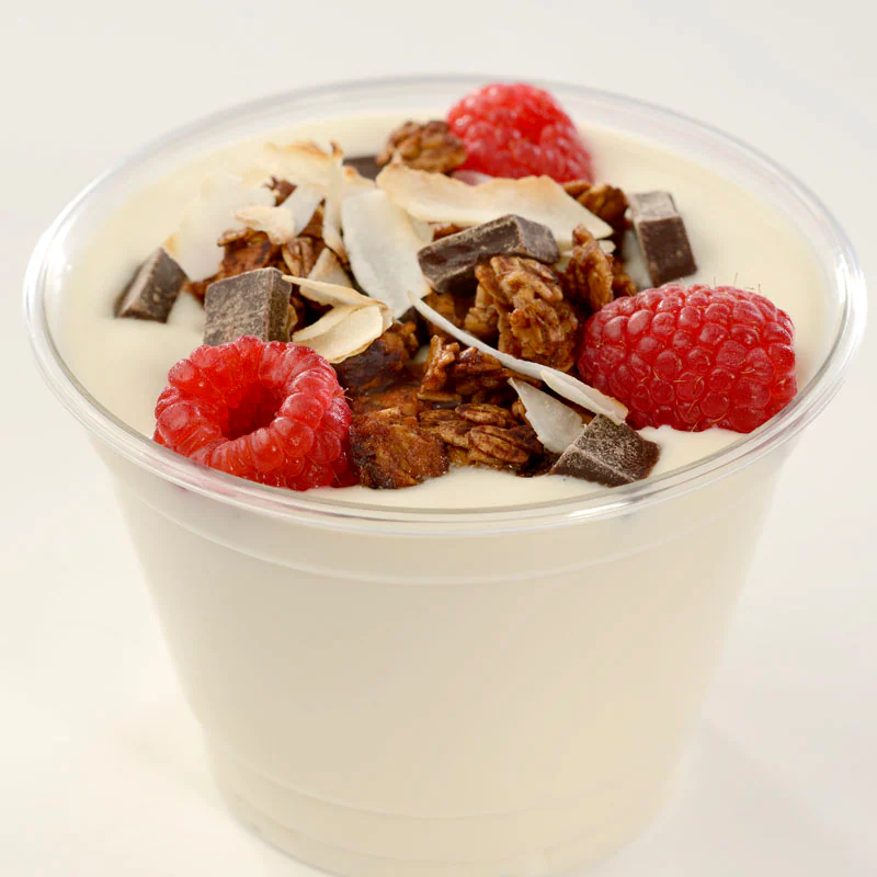 Raspberry Yogurt, Vanilla Yogurt, Raspberry Coulis, Granola